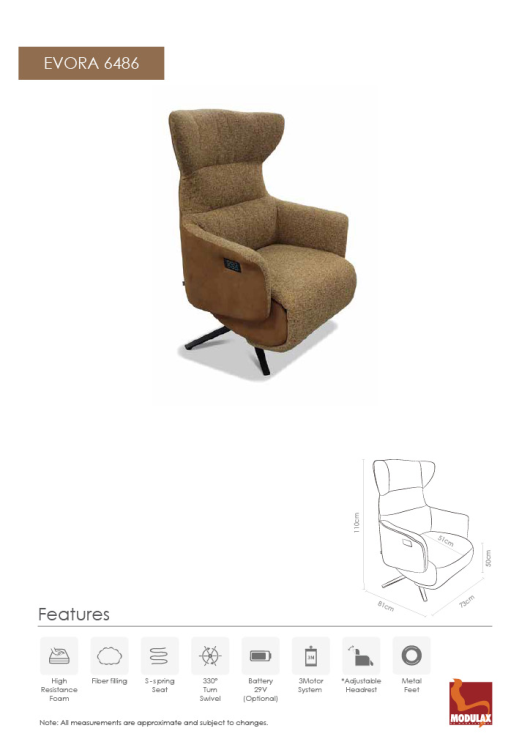 Met de ingebouwde accu gebruik je de fauteuil volledig draadloos en plaats je hem waar je maar wilt, zonder snoeren in zicht. De stoel is 300° draaibaar en staat op een stevige zwarte metalen voet met stopfunctie voor extra veiligheid en stabiliteit.